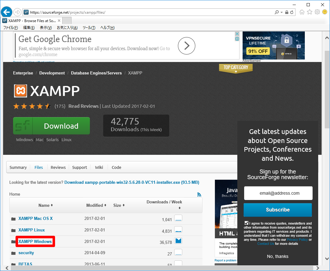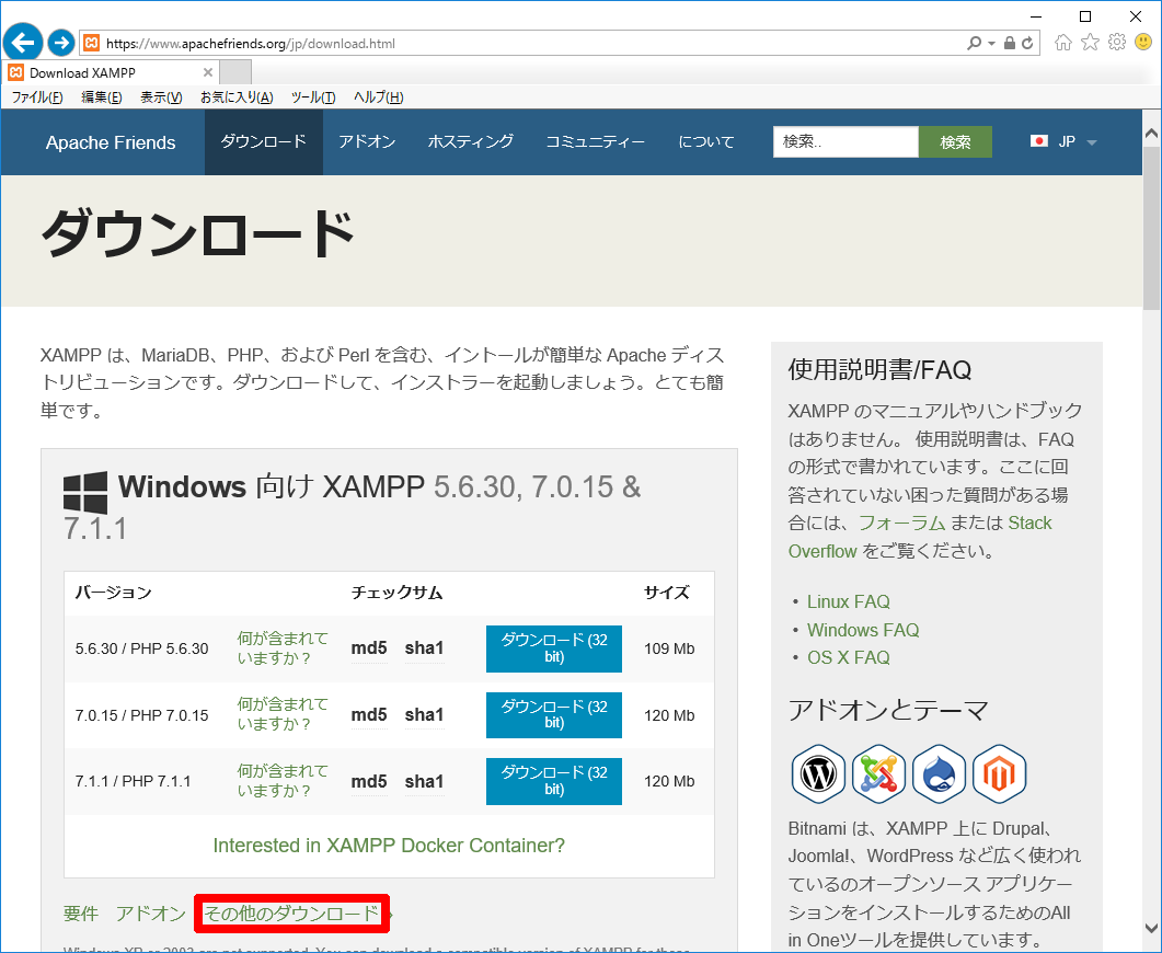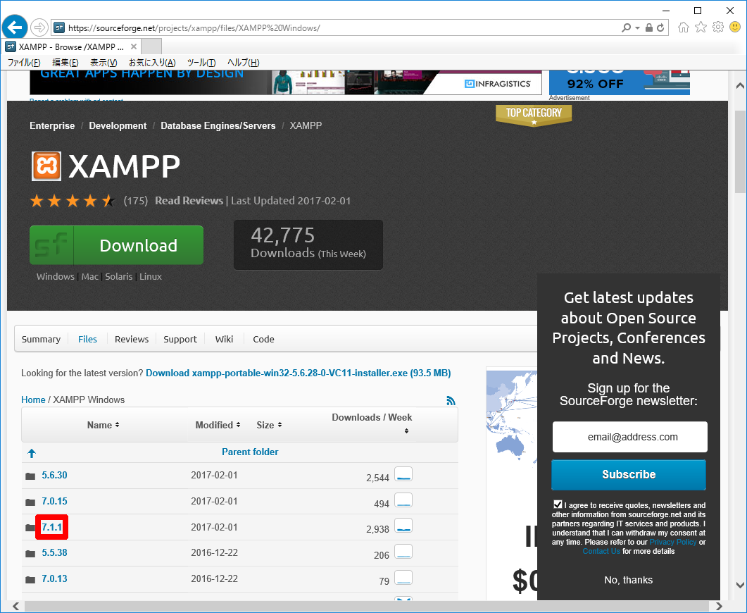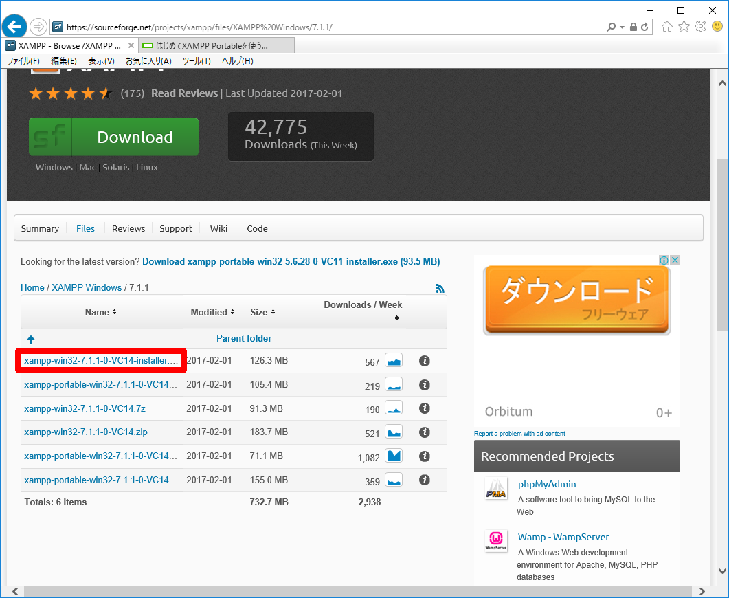 xampp-win32-7.1.1-0-VC-installerをクリックします。 |