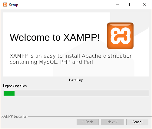 Lern more about Bitami for XAMPPのチェックボックスが初期値でチェックされています。このまま開始するとBitami for XAMPPの画面がブラウザで表示されます。必要がなければチェックを外します。 「Next」をクリックします。 |