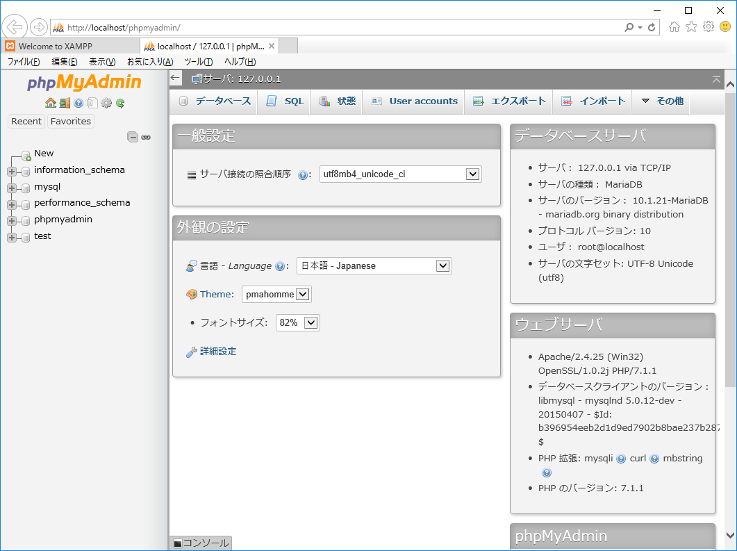 Windows10ノートパソコンにxampp 7.1.1をインストールしました。
